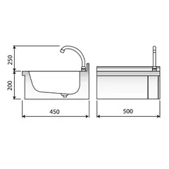 Безконтактна мивка, изработена от неръждаема стомана AISI 304 (18/10). Безшевна, изтеглена от един лист от стомана с дебелина 1 мм. Мивка с голям радиус за максимален капацитет, здравина, лесно почистване и хигиена. Работи посредством бутон. Размери 500/450/200мм.