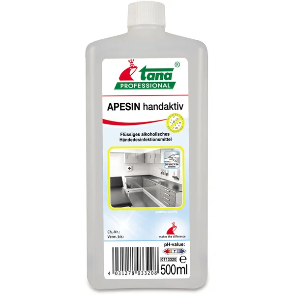 APESIN handactive F от Tana Professional е бързодействащ, готов за употреба алкохолен дезинфектант за ръце, предназначен за хигиенна и хирургична употреба. Формулата без аромат и оцветители е обогатена с овлажняващи съставки, които предпазват кожата, като същевременно осигуряват висока ефективност срещу бактерии, микобактерии, дрожди и обвити вируси.