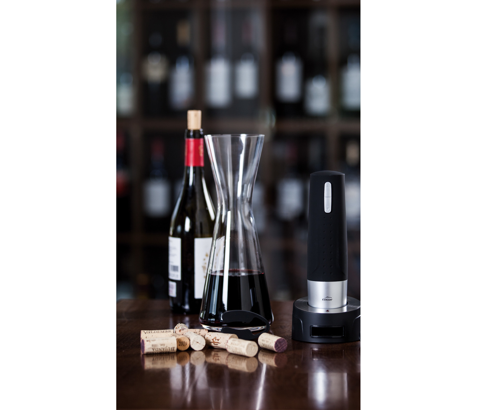 Lacor Smart 63054 е електрически тирбушон с елегантен, модерен и ергономичен дизайн, създаден за професионална и домашна употреба. С едно натискане на бутон, той отстранява корка за 6–8 секунди, тихо и плавно, без усилие. Корпусът от неръждаема стомана придава изискан вид, а LED осветлението и индикаторът за батерията осигуряват пълен контрол. Зарежда се чрез micro USB кабел, включен в комплекта, заедно с декaпсулатор. С капацитет до 40–50 бутилки на зареждане, Lacor Smart е надежден партньор за всяко събитие, ресторант или винена вечер у дома.