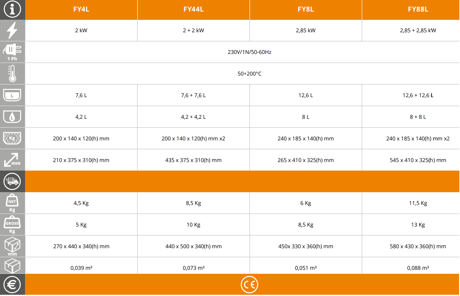 The Fimar FY44L is a professional double‑tank countertop fryer designed for kitchens that require flexibility, higher output and independent operation of each tank. It is ideal for restaurants, bars, cafés, bakeries, fast‑food outlets and mobile food concepts where different products need to be fried simultaneously without mixing flavours or oil.