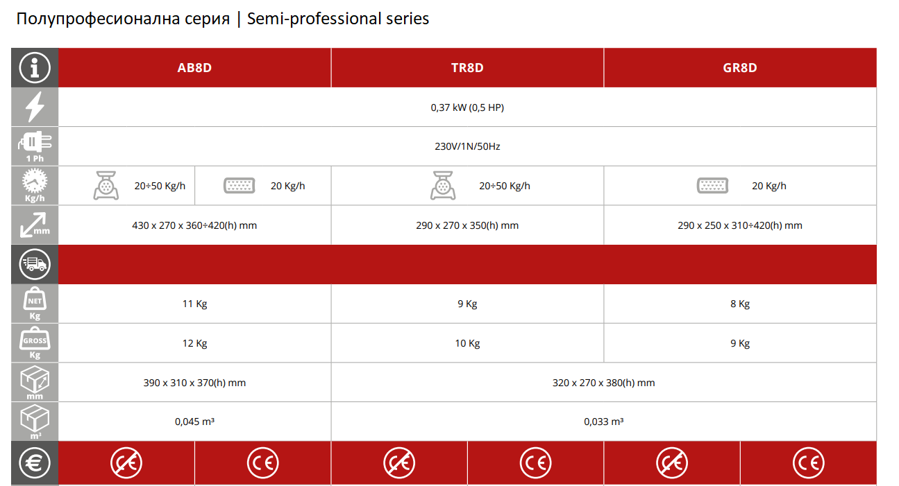 If you need a compact and affordable combined meat mincer and grater for light to medium workloads, the Fimar AB8D is the ideal solution. Contact us for a personalised offer.
