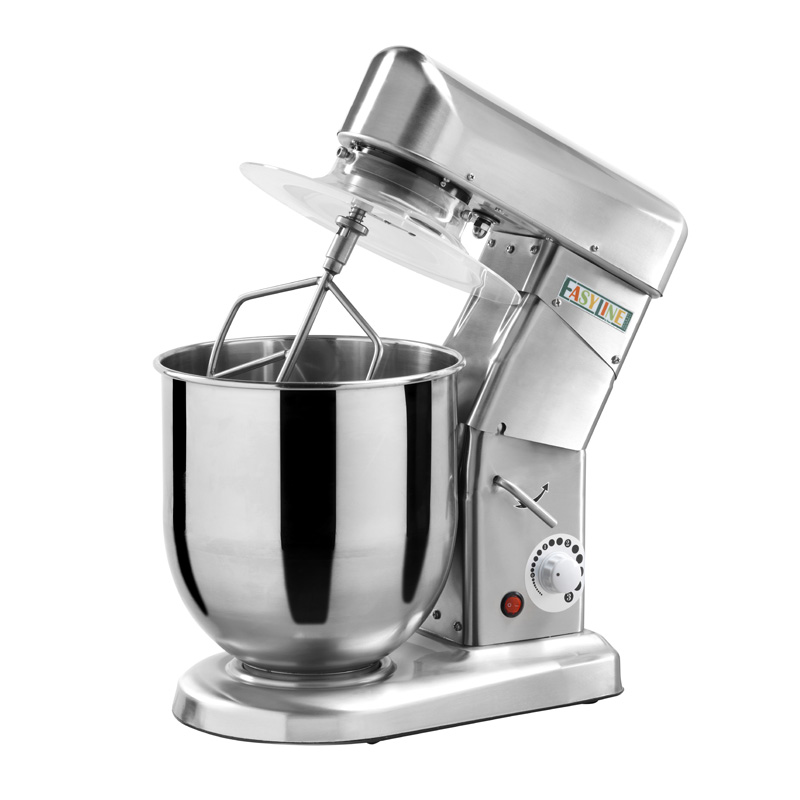 Compact planetary mixer for various types of dough, such as pizza, bread, biscuits, croissants, brioche, cream puffs, sponge cake, shortcrust pastry, meringue, purees, various sauces, whipped cream, etc.
