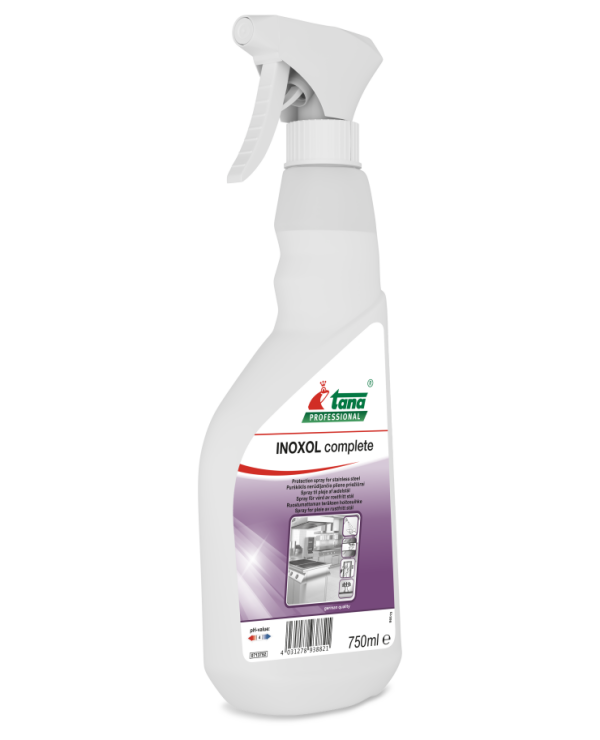 INOXOL complete by Tana Professional is a care product specially designed for metal surfaces, which combines cleaning, polishing and protection. Thanks to its paraffin oil formula, it removes water stains, fingerprints, dust and discolorations, while creating a protective layer against re-contamination and oxidation.