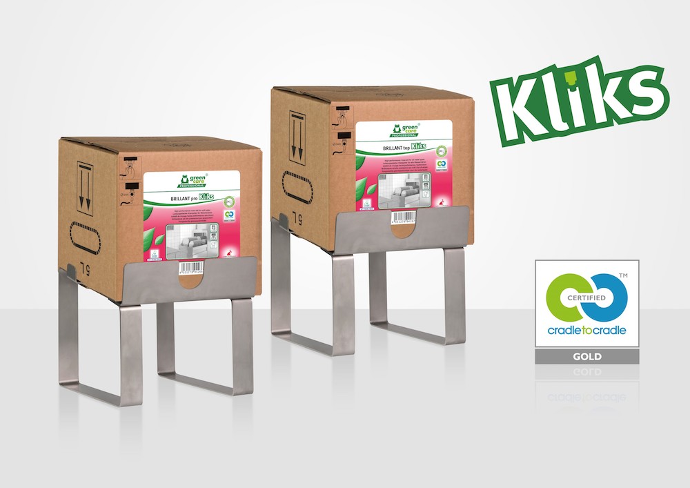 The product is part of the Kliks system - a closed dosing system that ensures maximum safety, economical use and complete emptying of the package. BRILLANT topKliks is certified by Cradle to Cradle® Gold, EU Ecolabel, EMAS, ISO 14001, and Ecovadis Platinum, making it ideal for sustainable kitchens and HACCP-compliant processes.