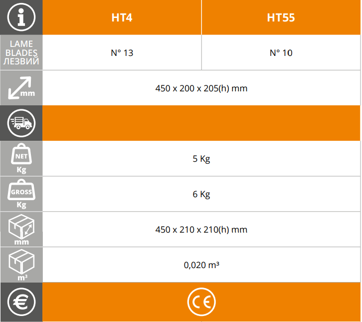 The HT4 and HT55 models offer speed, precision and convenience in a compact form. Thanks to the stable construction and multiple blades, they ensure uniform cuts without effort.