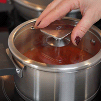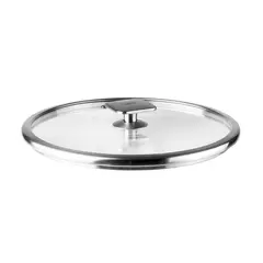 Glass lid with impact-resistant pressure valve and 18/10 stainless steel rim, available in 7 diameters.