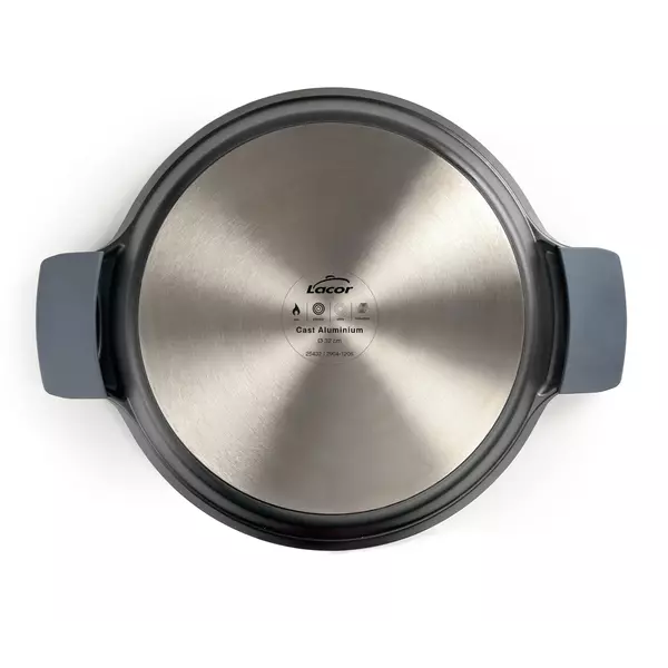 - The aluminum base allows for homogeneous heat distribution, thus food is cooked quickly and evenly, with almost no fat.