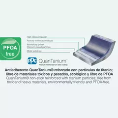 - Insulating 3-layer non-stick QuanTanium® coating, offering maximum quality, reinforced with titanium-based particles.