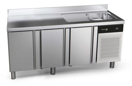 Нискотемпературни хладилни маси с 2 или 3 врати Concept gastronorm - GN 1/1 вместимост, дълбочина 700 мм, с вградена в плота мивка (330х330х200 мм)