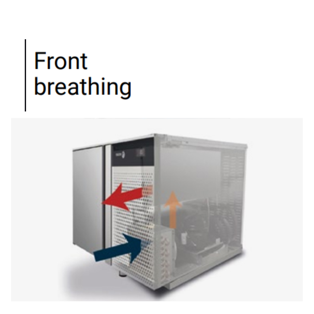 - Въртящ се преден сервизен панел с лесен достъп и вентилационната решетка, чийто дизайн позволява вграждане на машината без влошаване на производителността.