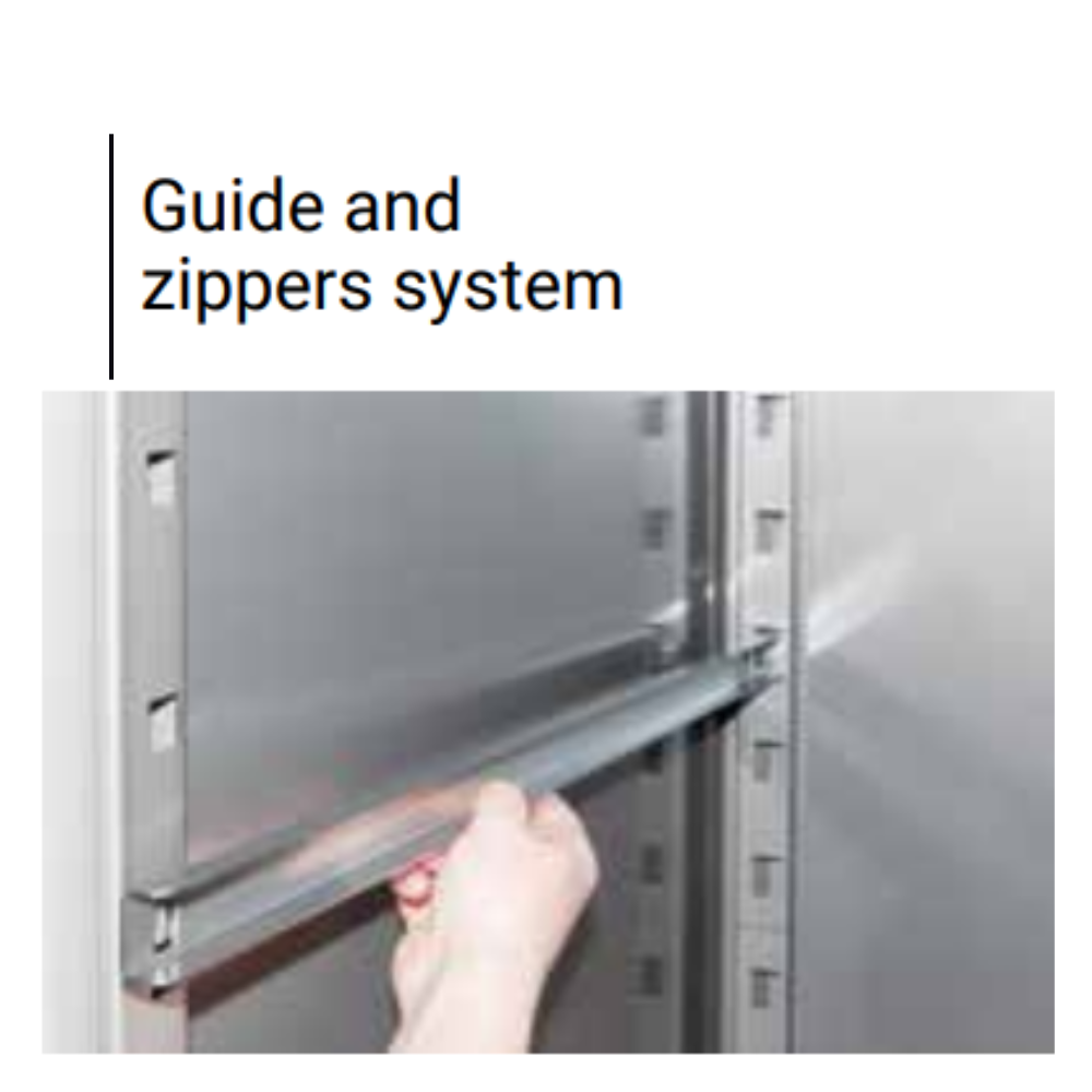 - Оборудван с 1 решетка GN 1/1 и регулируеми по височина 2 комплекта плъзгачи за тави за всяка врата.