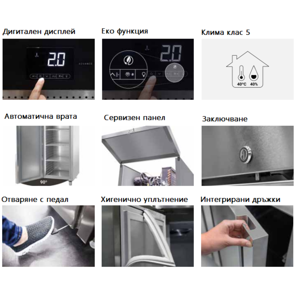 • Интуитивен, голям дигитален дисплей (Capacitive 5"за електронно управление с ЕКО функция за пестене на енергия - осигурява оптимален контрол при съхранението на продуктите.
