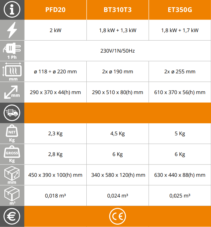 Fimar Easy Line PFD20 – компактен преносим индукционен котлон 2 kW с индукционна повърхност Ø118–Ø220 mm, стъклокерамична плоча, сензорно управление и дигитален таймер. Подходящ за кафетерии, мобилен кетъринг и HORECA кухни.