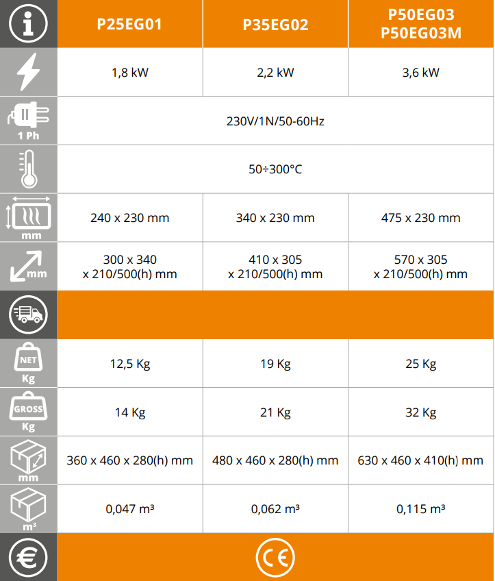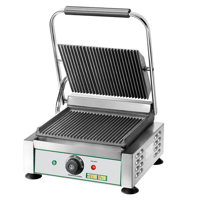 Fimar Easy Line P35EG02 – професионален контактен грил с чугунени плочи, мощност 2,2 kW и работна температура 50–300°C. Подходящ за месо, риба, зеленчуци, тостове и сандвичи. Компактен модел за ресторанти, кафетерии и HORECA кухни.