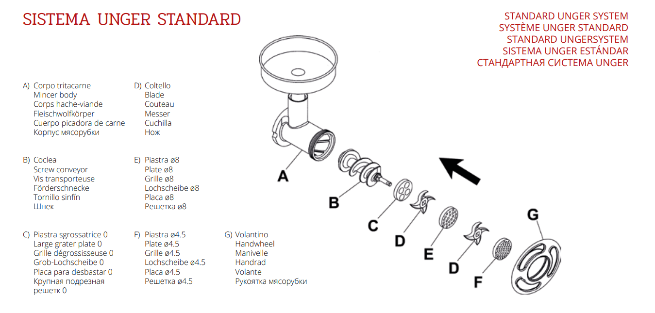 Unger система (опция) – налична само при мелачен блок от неръждаема стомана AISI 304
