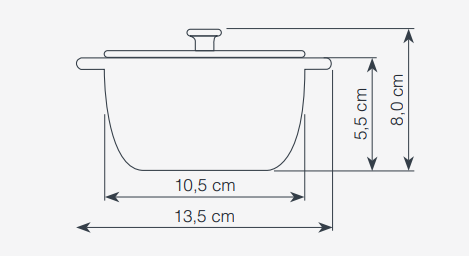 С вместимост 350 ml и компактни размери, този мини съд е идеален за сервиране на супи, предястия, гарнитури, десерти, топли и студени ястия. Капакът поддържа температурата и придава завършен, гурме вид на презентацията.