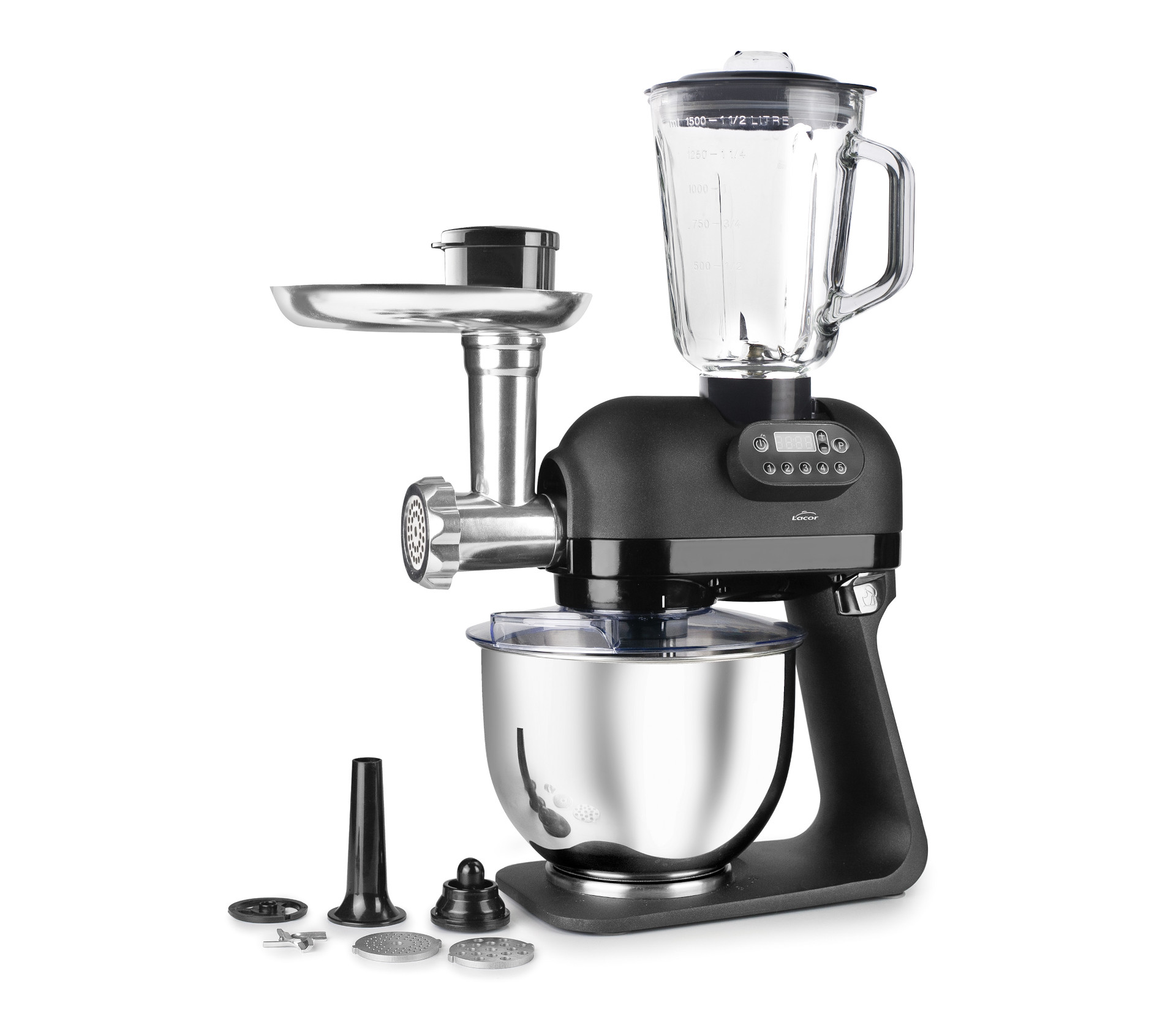 - Лесно сменяеми аксесоари: Рамо за смесване и рамо за месене, изработени от алуминий с незалепващо покритие. Рамо за разбиване от неръждаема стомана.