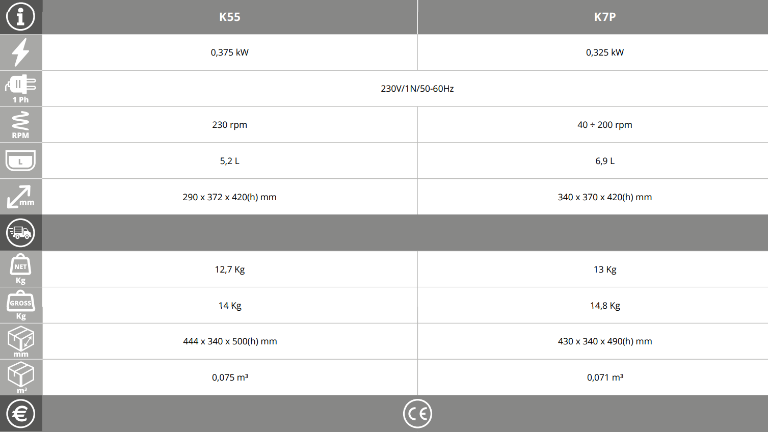 KitchenAid® K7P е професионален планетарен миксер с купа 6,9 литра, мощност 0,325 kW и захранване 220–240V/1N/50–60Hz. Благодарение на електронната скоростна кутия с 10 степени (40–200 rpm) и функция за плавно стартиране, моделът осигурява прецизен контрол и безопасност. Подходящ е за малки сладкарници, пицарии, кафетерии и ресторанти, които търсят надеждно решение за месене на тесто за пица и хляб, както и за разбиване на сметана, кремове и приготвяне на сладкарски изделия.
