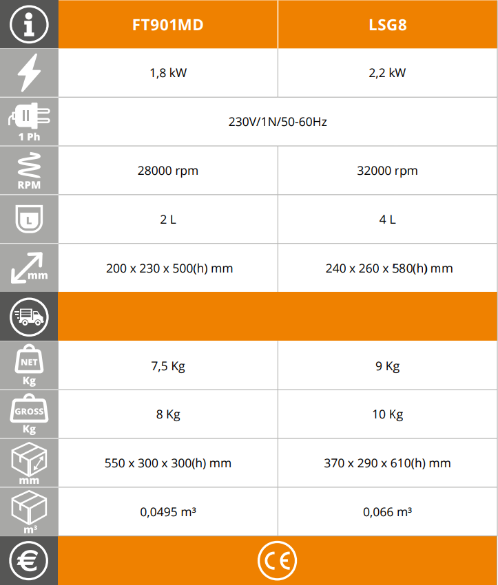 EasyLine Fimar LSG8 е високопроизводителен професионален блендер за смутита и млечни шейкове, оборудван със система за шумоизолация. С мощност от 2,2 kW и капацитет на каната 4 литра, този модел е идеален за барове, кафенета и хотели, където се изисква едновременно висока продуктивност и комфорт за клиентите.