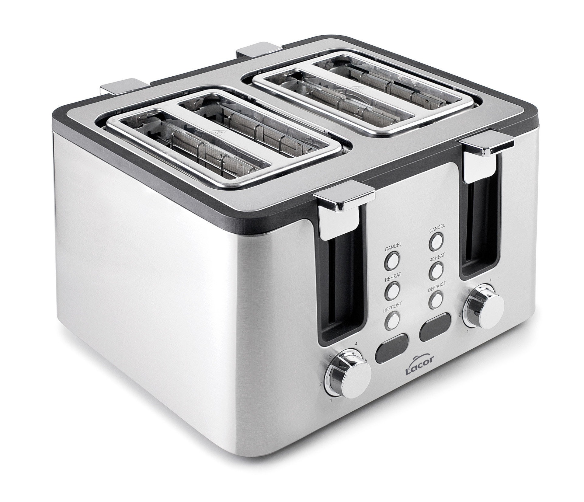 Тостерът Lacor Smart 69444 е идеален за семейни закуски — побира 4 филии едновременно, предлага равномерно препичане, стилен дизайн и лесно почистване.