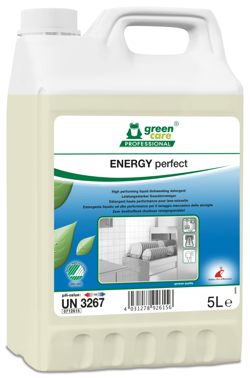 ENERGY perfect от Green Care Professional е концентриран препарат за професионални съдомиялни машини, създаден за интензивно обезмасляване и премахване на петна при мека и средно твърда вода. Формулата включва устойчив комплексообразуващ агент, който предотвратява образуването на варовик и осигурява перфектна хигиена и блясък.